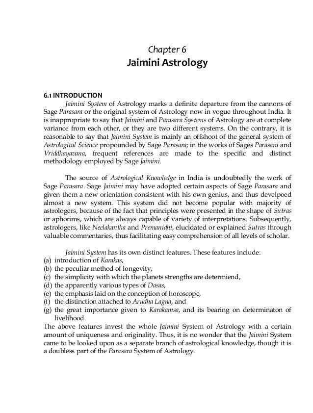 Studies in Jaimini Astrology - Astrobix.com The Jaimini System of Astrology upon which these studies are based, marks the definite departure from the canons of Parasari or the general system of Astrology now in vogue throughout in India. It cannot be maintained however that Jaimini and Parasari are at complete variance from each other or they are two distinct systems.