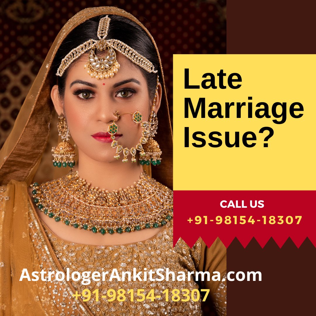 Late Marriage/ Delay In Marriage In Horoscope And Remedies Late Marriage In Horoscope/ Delay In Marriage In Astrology Reasons Behind Late Marriage (social): So many reasons are there behind the late marriage problem, but here I am going to mention some commons of them. 1. Miss-conception about marriage. 2. People are becoming over-professional day by day. 3. To become very choosy. 4.