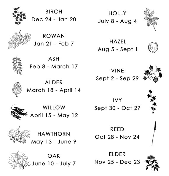 Celtic Astrology: How the Mystical Power of the Druid Tree Signs Can ... According to Druid teaching, which is thought to reach back to 500 BCE, each tree contains a dryad, or magical tree spirit. Celtic Astrology, based on the mystical tree calendar in which the tree dryads represent the spiritual nature in human beings, will help you gain a new understanding of yourself and of others.All you need is the day and month of birth to find the corresponding tree sign ...
