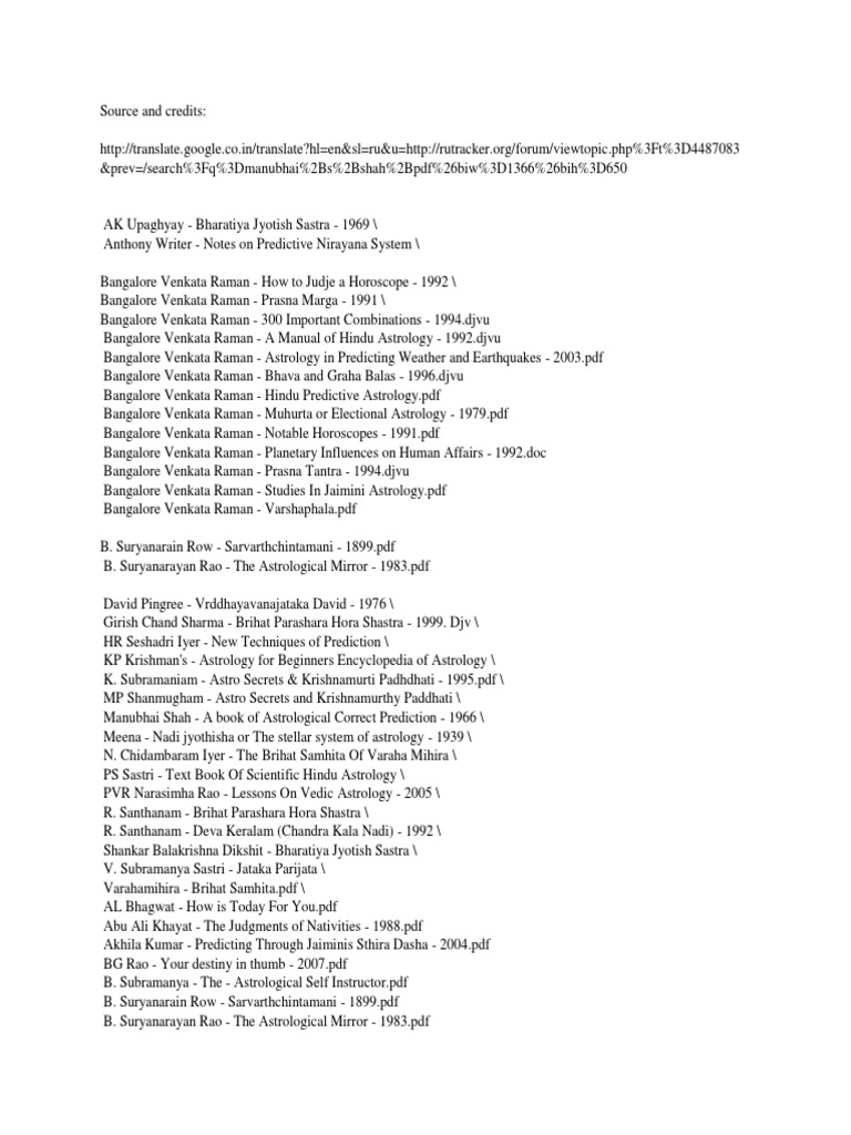 Ancient Jyotish Books (Vedic Astrology) - Google Drive Files 001-Predictive-Jyotish-Astrology-by-M-N-kedaar.pdf 170218007-Nadi-Astrology-Patel.pdf Book. Astrolocality Astrology.pdf Book. Bhrigu Samhita T.M.Rao_text.pdf Book. Bhrigu...