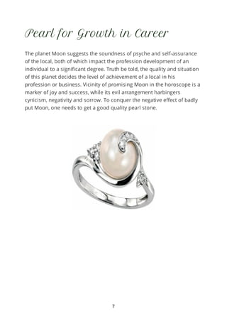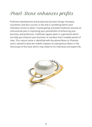 Importance and Benefits of Pearl Gemstone-MyPandit The Moon is known as the 'Ruling Planet of Emotions' in Astrology and is connected with delivering quiet and harmony. The pearl gemstone inspires positivity and courage in its wearer and makes them emotionally accessible, kind, and psychologically healthy. It also allows the wearer to explore and discover.
